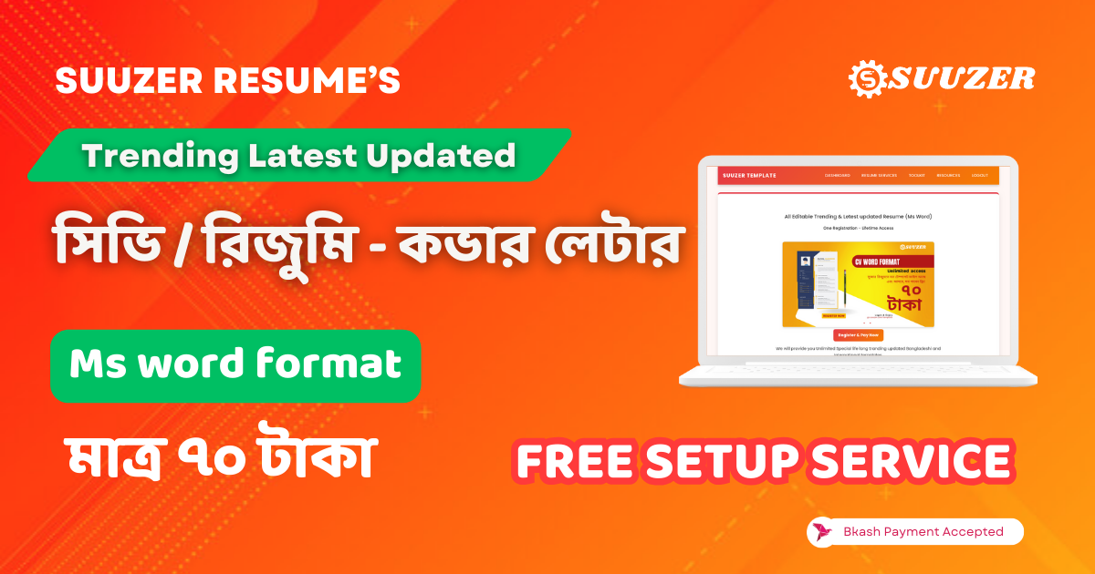 🔄 Suuzer Resume এর টেমপ্লেট নিয়মিত আপডেট হয়, তাই নির্ভয়ে ব্যবহার করুন!